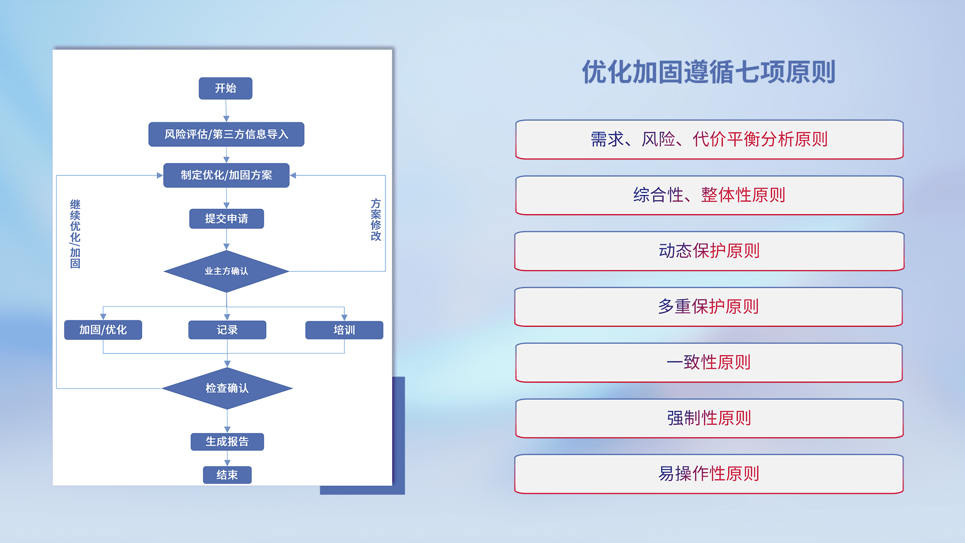 最大程度利用现有资产,,,对评估发现的问题进行封堵与整改,,,,防止漏洞被利用,,提升整体网络安全性,,,为客户带来高标准的优化加固服务。。。